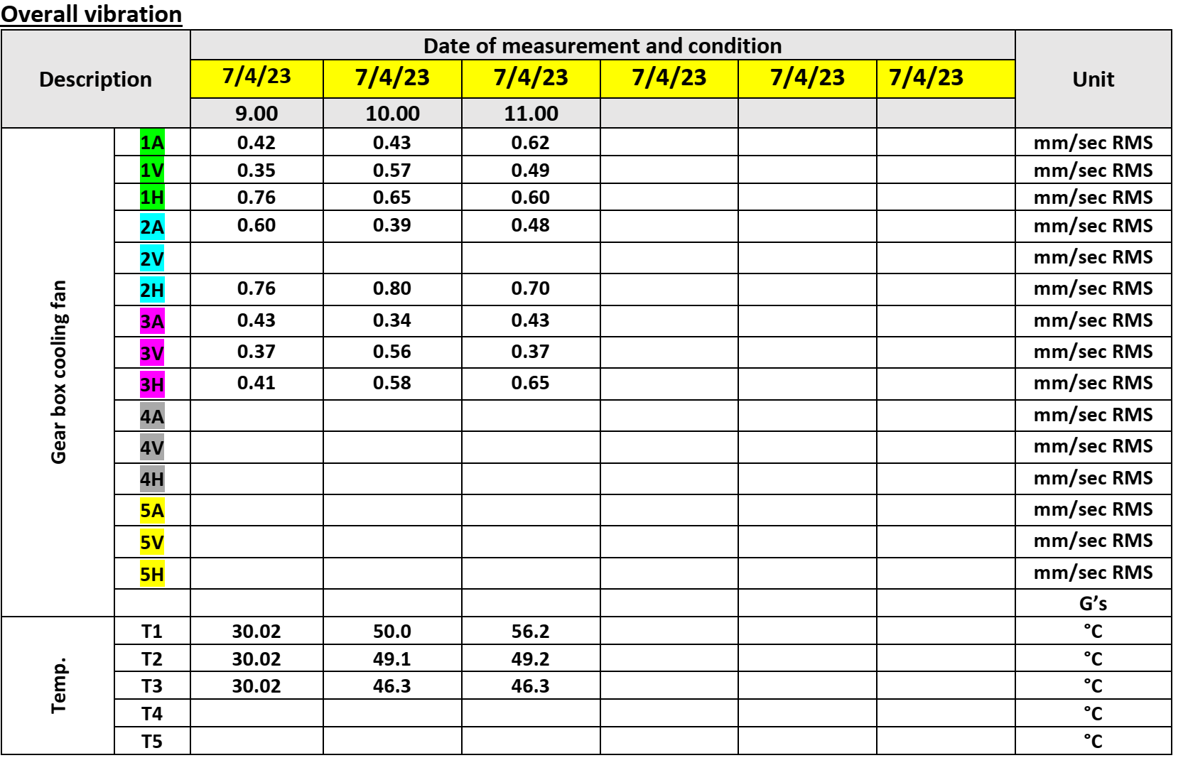Machine description and vibration measurement point
